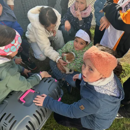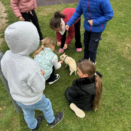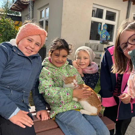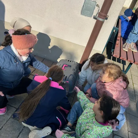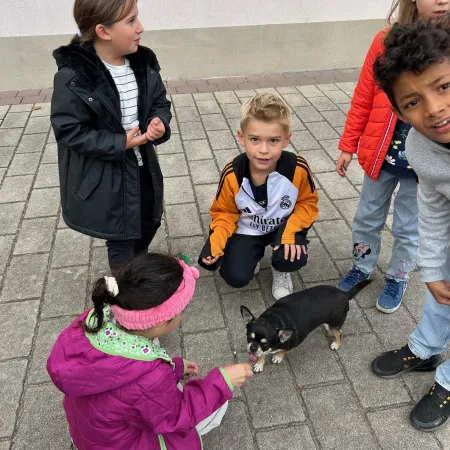 Passend zum aktuellen Sachunterrichtsthema "Haustiere" bekamen die Kinder der 2.a Besuch von einem Katzenkind und zwei Hündchen.