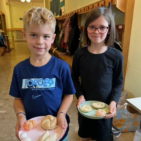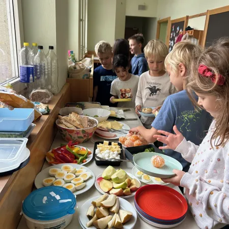 Am Montag, den 6.10.2025, fand die erst "gesunde Jause" der 2.a statt. Die Eltern der Schülerinnen und Schüler stellten uns viele gesunde Snacks bereit. Das war sehr lecker!