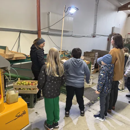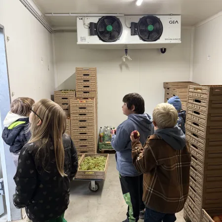 Die Kinder der Kooperationsklasse besuchten den Obsthof Pankl und erhielten spannende Einblicke in die Arbeit rund um die heimische Obsternte. Besonders beeindruckend war der Blick in den Kühlraum, in dem die frische geernteten Früchte gelagert werden, um ihre Qualität zu bewahren. Auch die Sortiermaschine für die Äpfel war spannend zu beobachten. Zum Abschluss durfte sich jedes Kind einen Krampusapfel aussuchen.