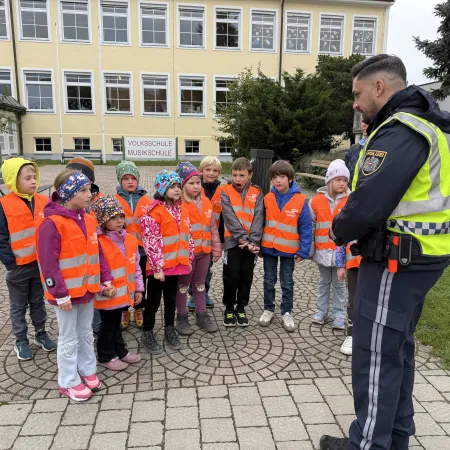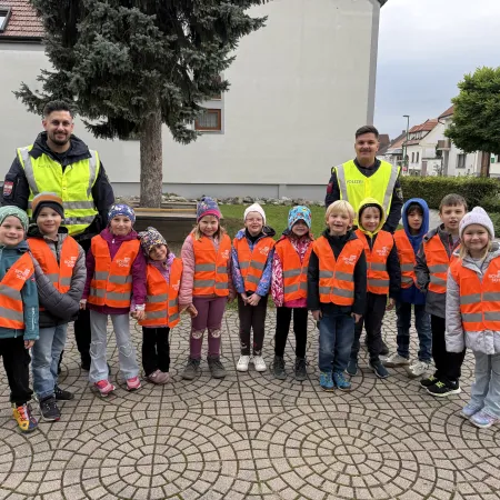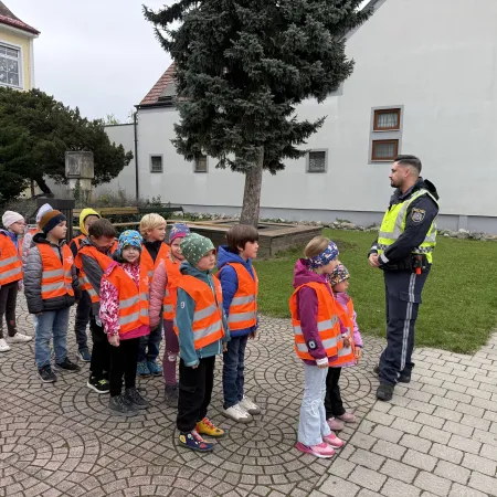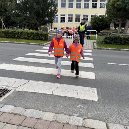 Anschließend durften die Kinder zeigen, wie toll sie sich bereits beim richtigen Überqueren der Straße auskennen. Als Geschenk gab es Warnwesten, damit sie auch bei schlechtem Wetter gut sichtbar sind.