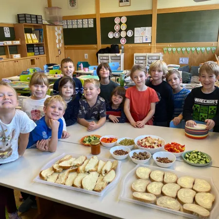Am Montag, den 6.10.2025, fand die erst "gesunde Jause" der 2.a statt. Die Eltern der Schülerinnen und Schüler stellten uns viele gesunde Snacks bereit. Das war sehr lecker!
