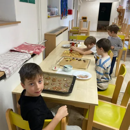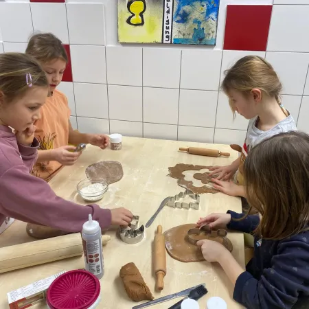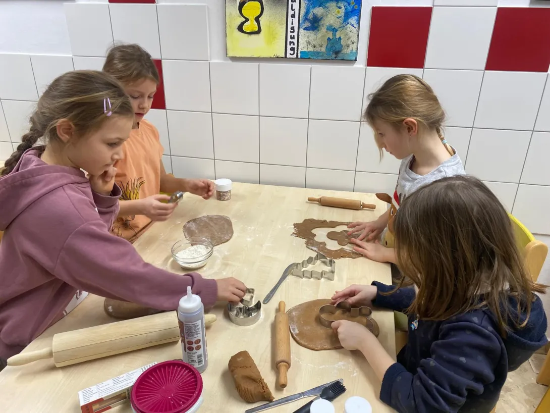 In unserer "Wichtelwerkstatt" wurde an verschiedenen Stationen fleißig gebastelt, Rätsel gelöst und in der Weihnachtsbäckerei mit viel Freude Kekse gebacken.