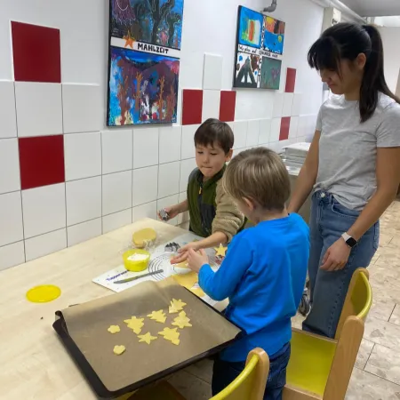 In den vergangenen drei Wochen stand bei uns alles unter dem Motto "Wir sind eine Gemeinschaft". Bei unserem ersten Projekt haben die Nachmi-Kinder durch verschiedene Kooperationsspiele erlebt, wie wichtig die Zusammenarbeit und die gegenseitige Unterstützung sind. Mit viel Freude und Kreativität gestalteten alle anschließend bunte Handabdrücke, die am Ende des Projekts zu einem großen "WIR" zusammengesetzt wurden.