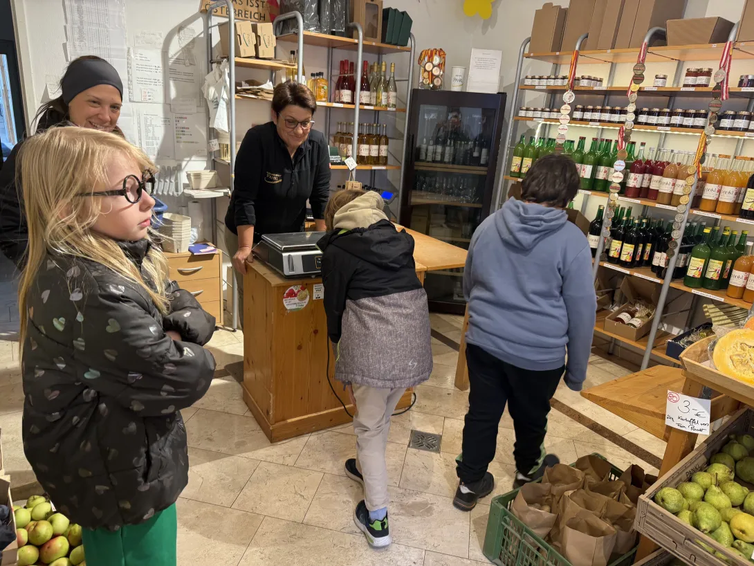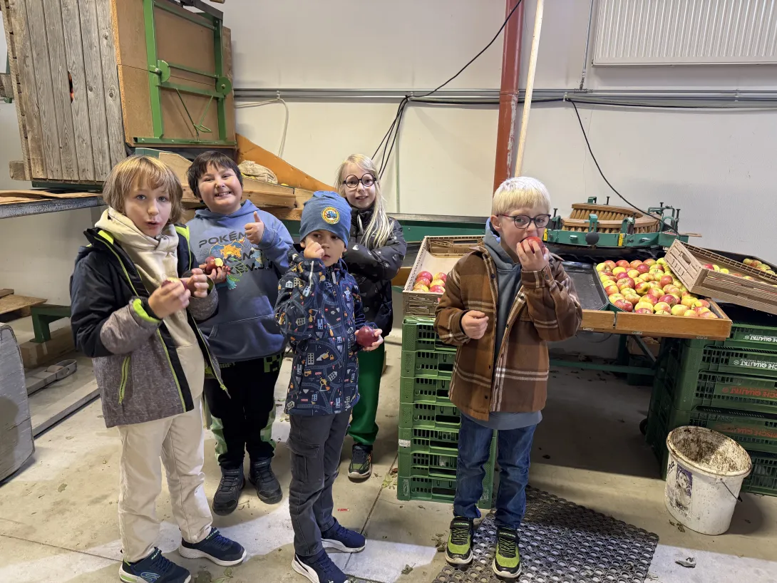 Die Kinder der Kooperationsklasse besuchten den Obsthof Pankl und erhielten spannende Einblicke in die Arbeit rund um die heimische Obsternte. Besonders beeindruckend war der Blick in den Kühlraum, in dem die frische geernteten Früchte gelagert werden, um ihre Qualität zu bewahren. Auch die Sortiermaschine für die Äpfel war spannend zu beobachten. Zum Abschluss durfte sich jedes Kind einen Krampusapfel aussuchen.